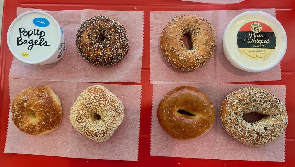 Our verdict: PopUp has the better everything bagel, and their bagels look a little prettier for social media snaps, but Emerald City has a better selection and flavors generally speaking.
