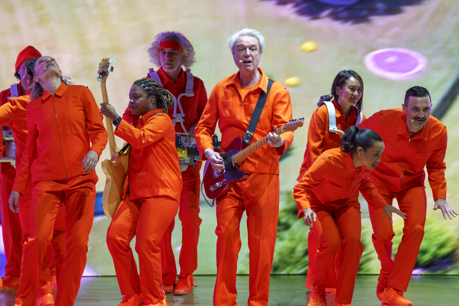 David Byrne brought his Who is the Sky tour to the Fox Theatre on Tuesday evening for the first of two sold-out shows in support of his 11th studio album of the same name. The former Talking Heads frontman and guitarist blended music, visual art, and storytelling accompanied by his 12-piece troupe of musicians, singers, and dancers who performed wireless, allowing them to move around the staging, creating an immersive experience for the crowd. The setlist included new material from Who is the Sky?, along with several Talking Heads hits including “Heaven,” “Psycho Killer,” “Once in a Lifetime,” and “Burning Down the House.” Here, check out the scenes photographer Perry Julien captured at the show.
